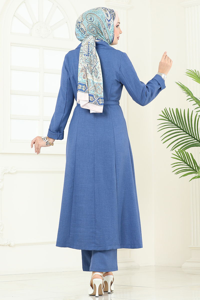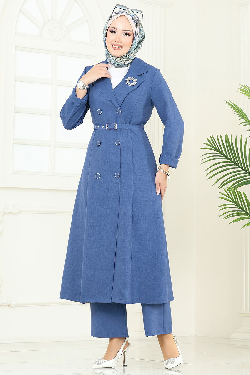 Product Feature : It is a new season hijab fashion product. The product has a Double-breasted collar. The product has half front buttons. Unlined. Belt included, optional not available. The waist of the trousers is elastic. There may be a tonal difference in the product due to concept photo shoots.
