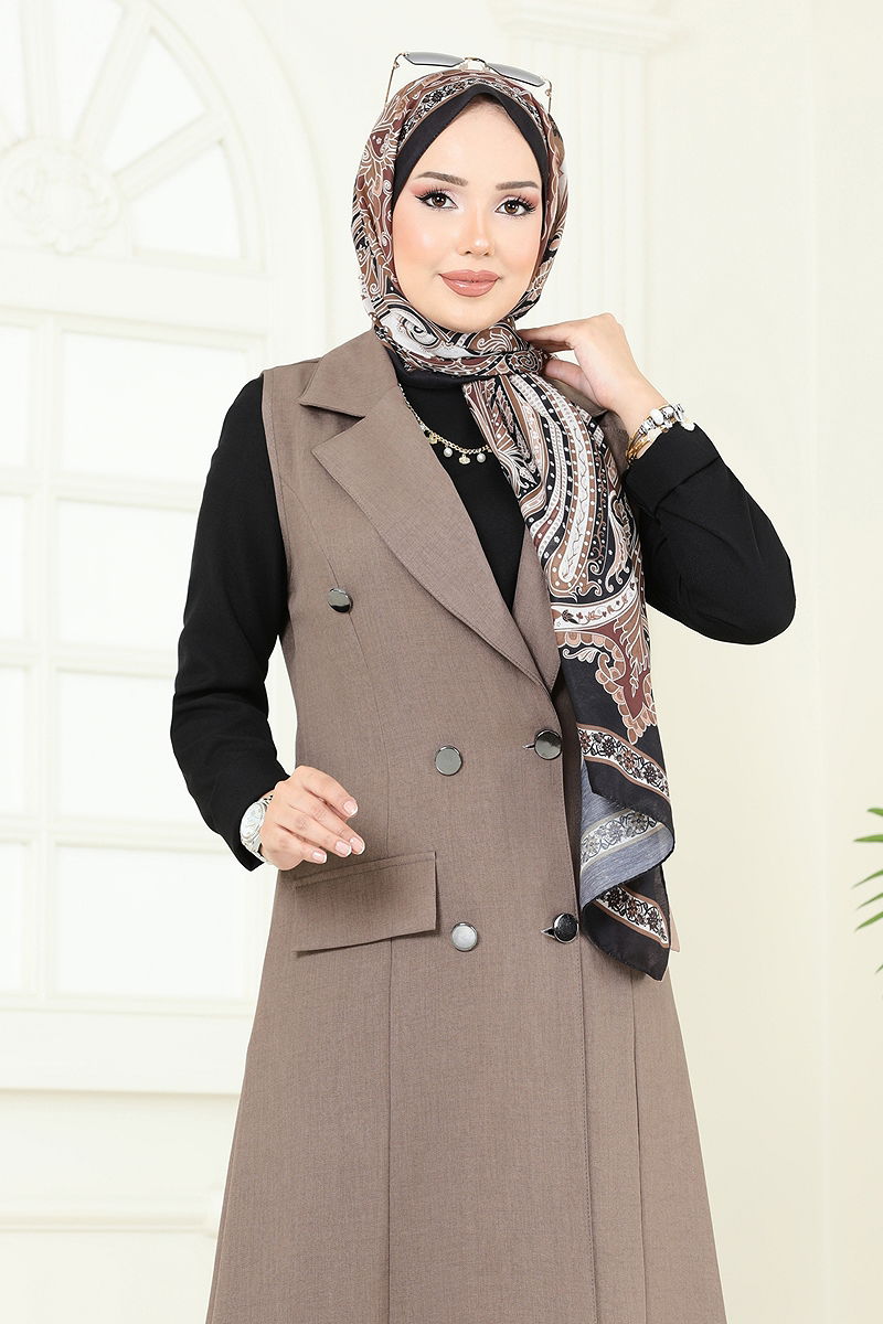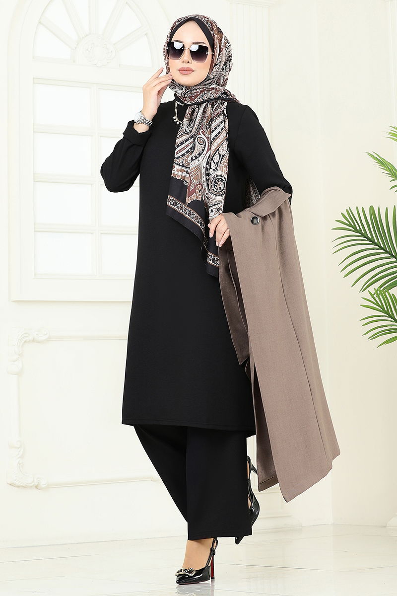 Product Feature : It is a new season hijab fashion product. The product has a Double-breasted collar. The product has half front buttons. Unlined. Pocket detail is an accessory. The waist of the trousers is elastic. There may be a tonal difference in the product due to concept photo shoots.
