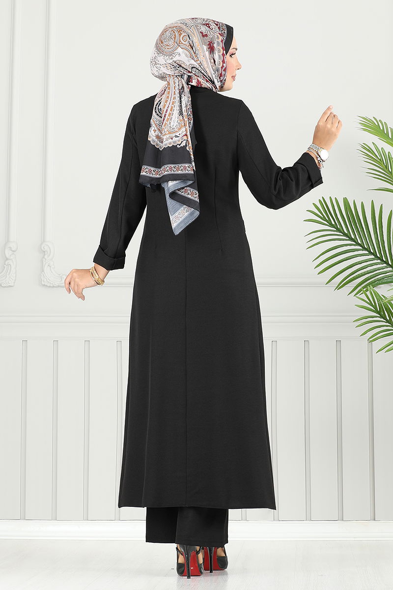 The Accessory Pocket Sofia Set is an elegant and modern design suitable for wear in all seasons under modest fashion guidelines. Featuring a mandarin collar and unlined design for optimum comfort. The trousers have an elastic waist guaranteeing comfort throughout the day, while the shirt-style top comes with half-buttons for ease of use and a stylish appearance. Ideal for both everyday wear and special occasions, the Sofia Set can be washed gently at 30 degrees. The displayed model wears a size 38, with options available for all sizes.