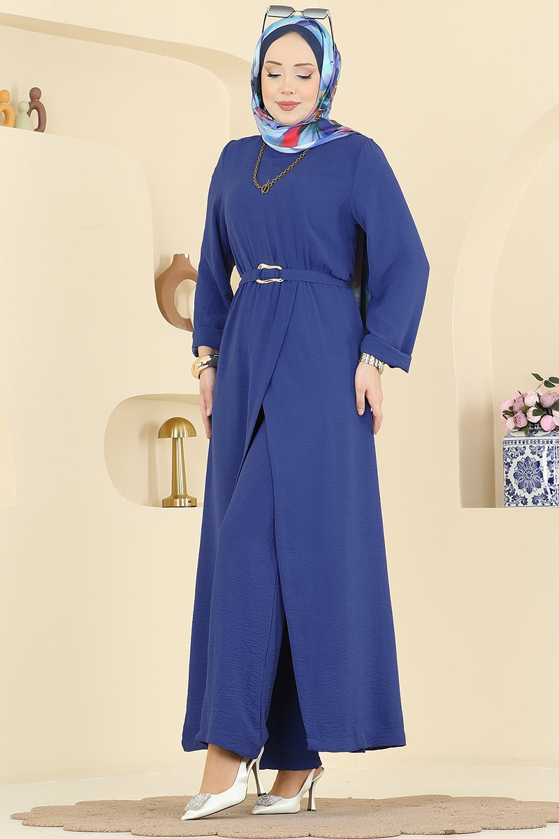 Chic and comfortable, the Slit Detailed 2-Piece Set is an ideal modest wear combo that can be favored throughout all seasons. Made from aerobin fabric, this set ensures a gentle wash at 30 degrees. The tunic stands out with its modern bicycle neckline and button details at the back, while the front slit offers freedom of movement. Comprising a pants and tunic, this duo offers an unlined and comfortable experience with its elastic waist. The included belt can be adjusted or removed as desired. This set, combining comfort and elegance, will become an essential part of your wardrobe.