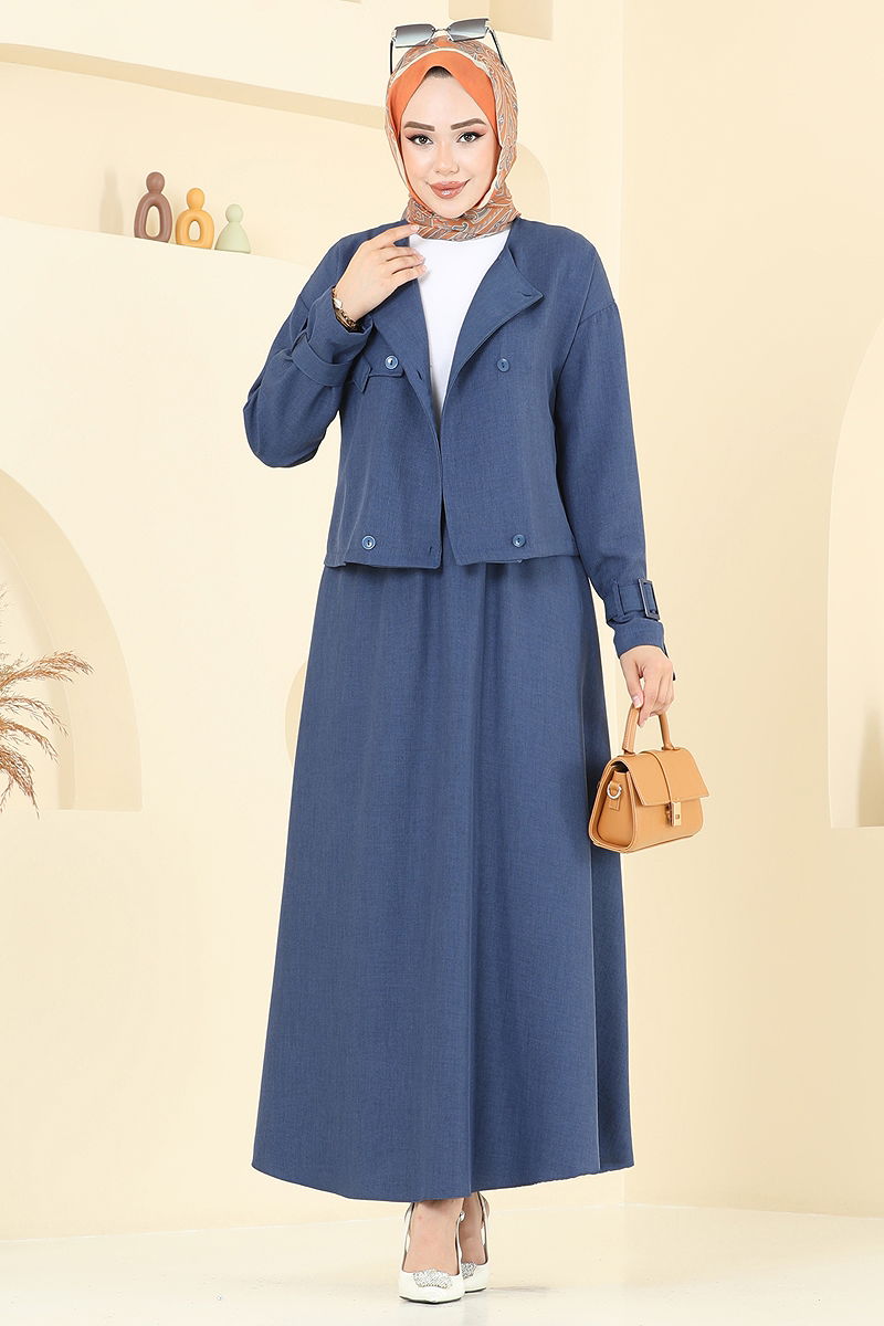 The Cuff-Buttoned Sofia Suit stands out with its Sofia Combination Design, providing a modern and chic look. Made from Sofia linen fabric, this modest wear is suitable for gentle washing at 30 degrees. The outfit features a mandarin collar and front button design, ensuring comfortable wear. With its unlined structure, it offers lightness, and the elastic waistband of the skirt provides a comfortable fit. Comprising a blouse and skirt, this set is perfect for both everyday and special occasions.