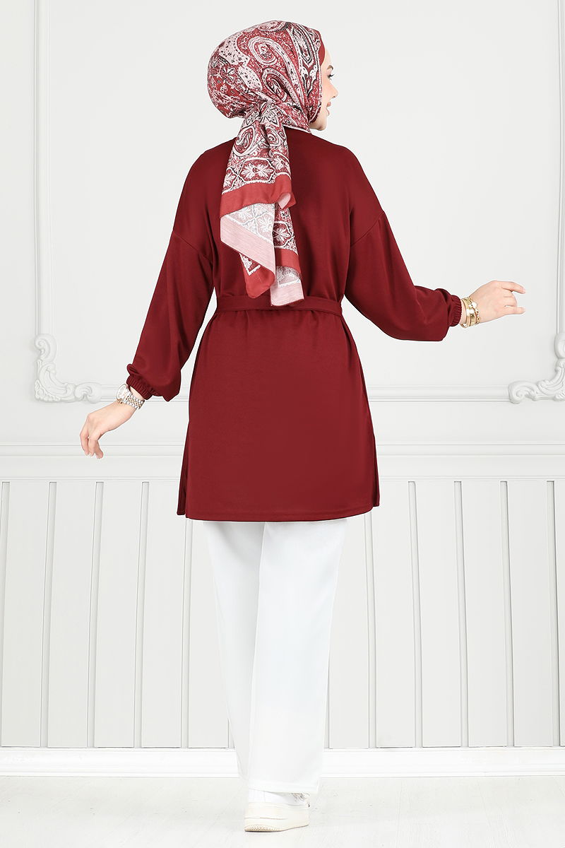 Product Feature : It is a new season hijab fashion product. It has a belt that can be fastened from the side. The product has a Cycling collar. Unlined. Belt is sewn to the product. Buttons are accessories. The waist of the trousers is elastic. The cuff is rubberized. There may be a tonal difference in the product due to concept photo shoots.