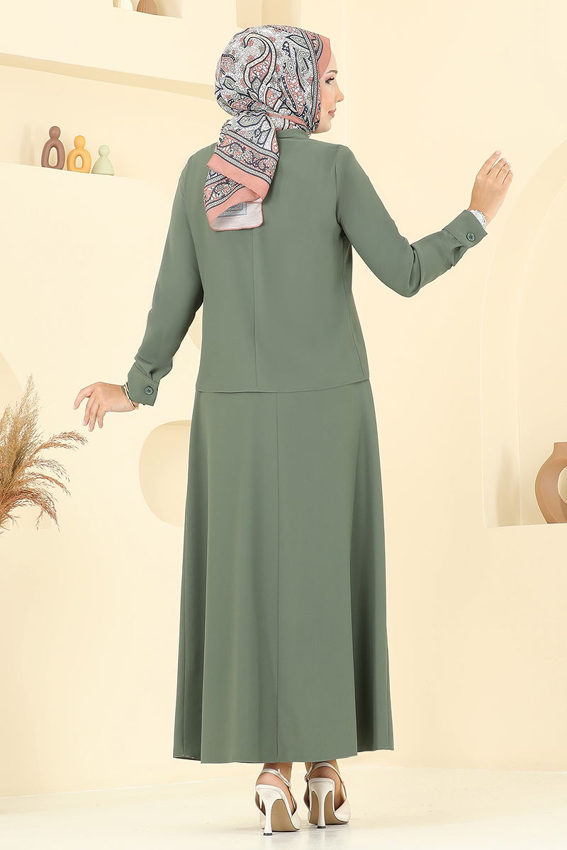 The elegant and modern Shirt Collar Skirt Set stands out with its design that can be comfortably worn in all seasons. Ideal for delicate garments, this hijab suit can be washed at 30 degrees. Made from Dubai silk fabric, the product completes your elegance with its shirt collar and front button design. This unlined model offers comfortable use. Accessories such as pocket details and cuff buttons on the skirt and shirt also attract attention. The belt included with the product is designed with stitched ends and can be optionally not used. A buttons on the waist of the skirt provides ease of use.