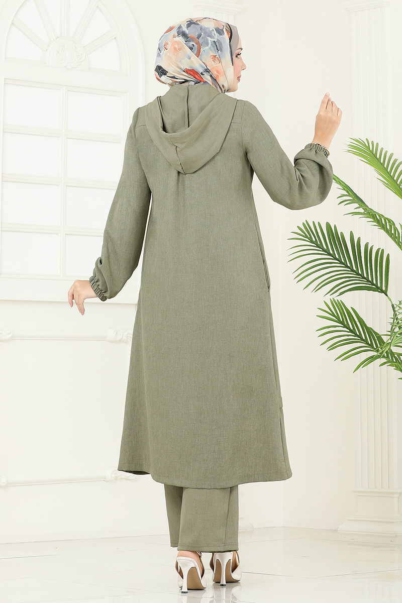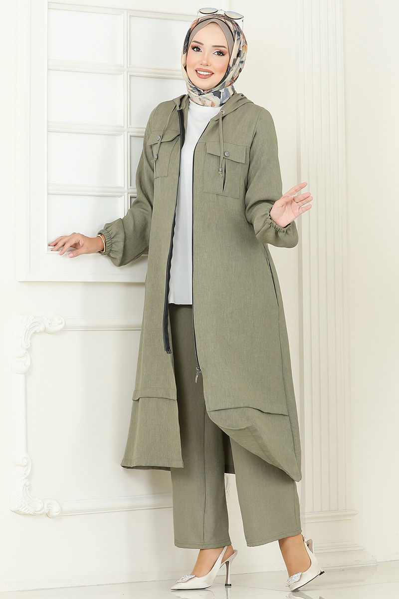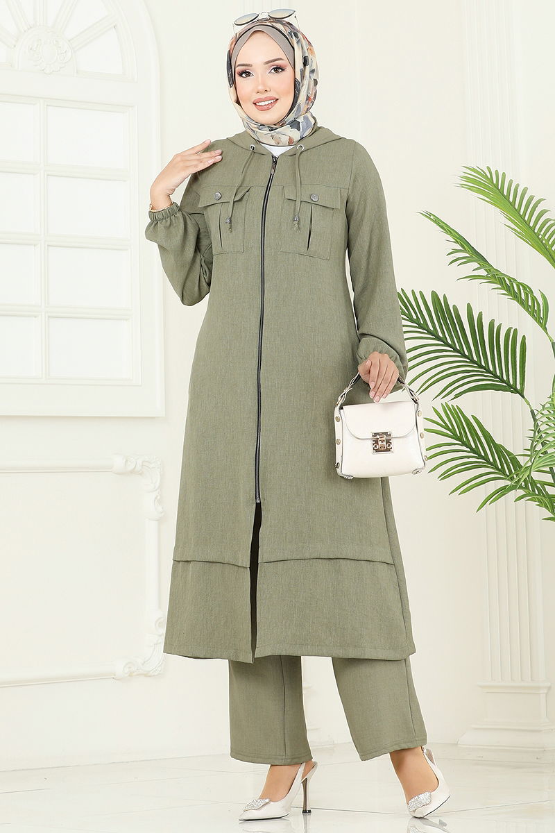المنتج لديه ياقة مع قبعة. غير مبطنة. المنتج به سحاب في جزء من الأمام. يحتوي المنتج على جيب. خصر البنطال مرن. السوار مطاطي. قد يكون هناك اختلاف في الدرجة اللونية في المنتج بسبب التقاط الصور الفوتوغرافية.
