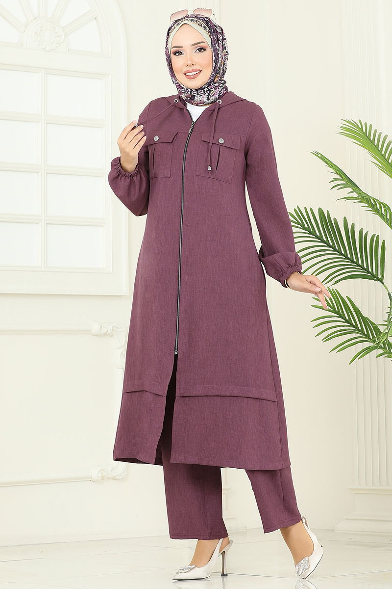 المنتج لديه ياقة مع قبعة. غير مبطنة. المنتج به سحاب في جزء من الأمام. يحتوي المنتج على جيب. خصر البنطال مرن. السوار مطاطي. قد يكون هناك اختلاف في الدرجة اللونية في المنتج بسبب التقاط الصور الفوتوغرافية.