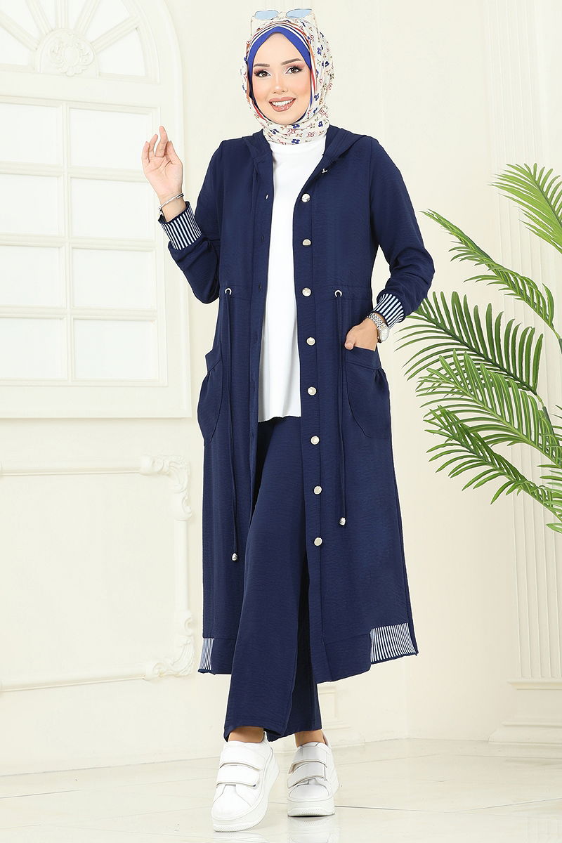 يتميز بخصر ذو أربطة. المنتج لديه ياقة مع قبعة. المنتج به أزرار من الأمام. غير مبطنة. الجيب متاح. خصر البنطال مرن. قد يكون هناك اختلاف في الدرجة اللونية في المنتج بسبب التقاط الصور الفوتوغرافية.