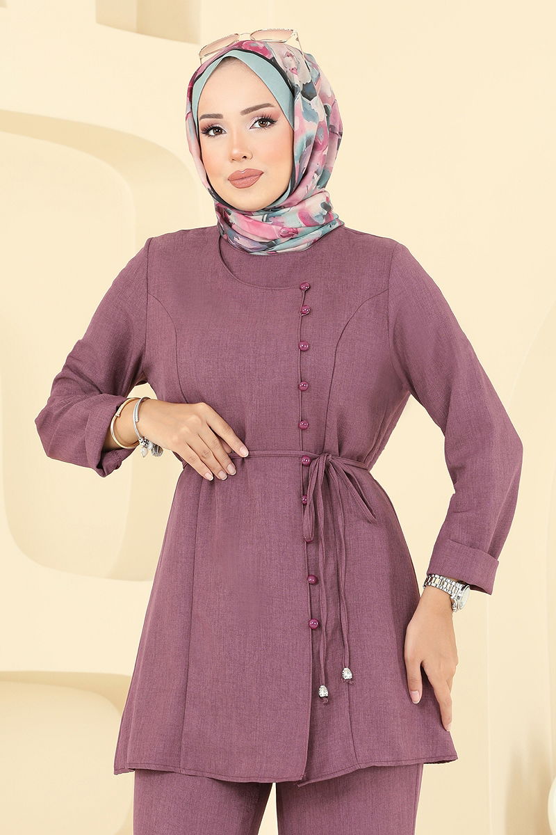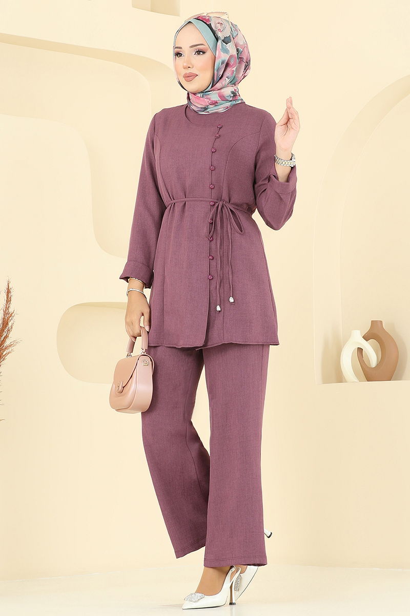 Product Feature : It is a new season hijab fashion product. It has a button that can be used from the back. The product has a Cycling collar. The product has From the front buttons. Unlined. Lacing is included, optional not available. The waist of the trousers is elastic. There may be a tonal difference in the product due to concept photo shoots.