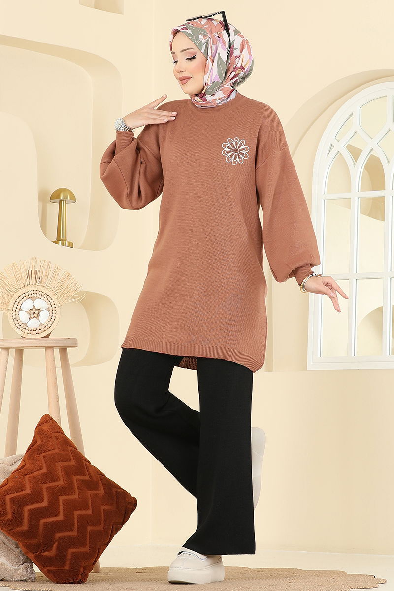 Perfect for refreshing your winter wardrobe, this Floral Detailed Knit Set will keep you warm and stylish during the autumn and winter seasons. Designed for gentle care, this set can be washed at 30 degrees and is made from knit fabric. With a crew neck and an unlined design, it offers ease of wear, available in standard sizes, comprising a tunic and pants. The elastic waist on the pants ensures your comfort, while the sewn floral details complete your elegance.