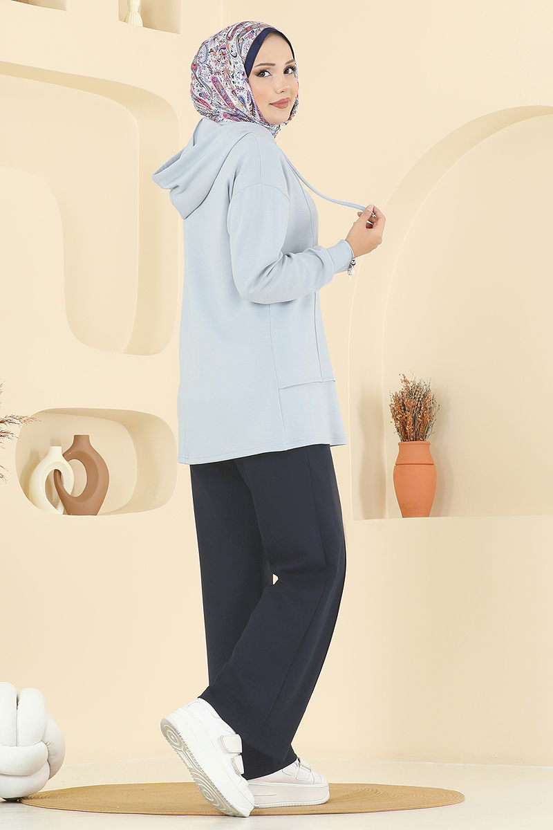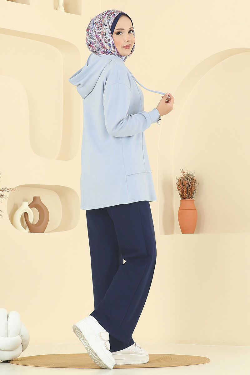 المنتج لديه ياقة مع قبعة. غير مبطنة. التفاصيل مخيطة. خصر البنطال مرن. قد يكون هناك اختلاف في الدرجة اللونية في المنتج بسبب التقاط الصور الفوتوغرافية.