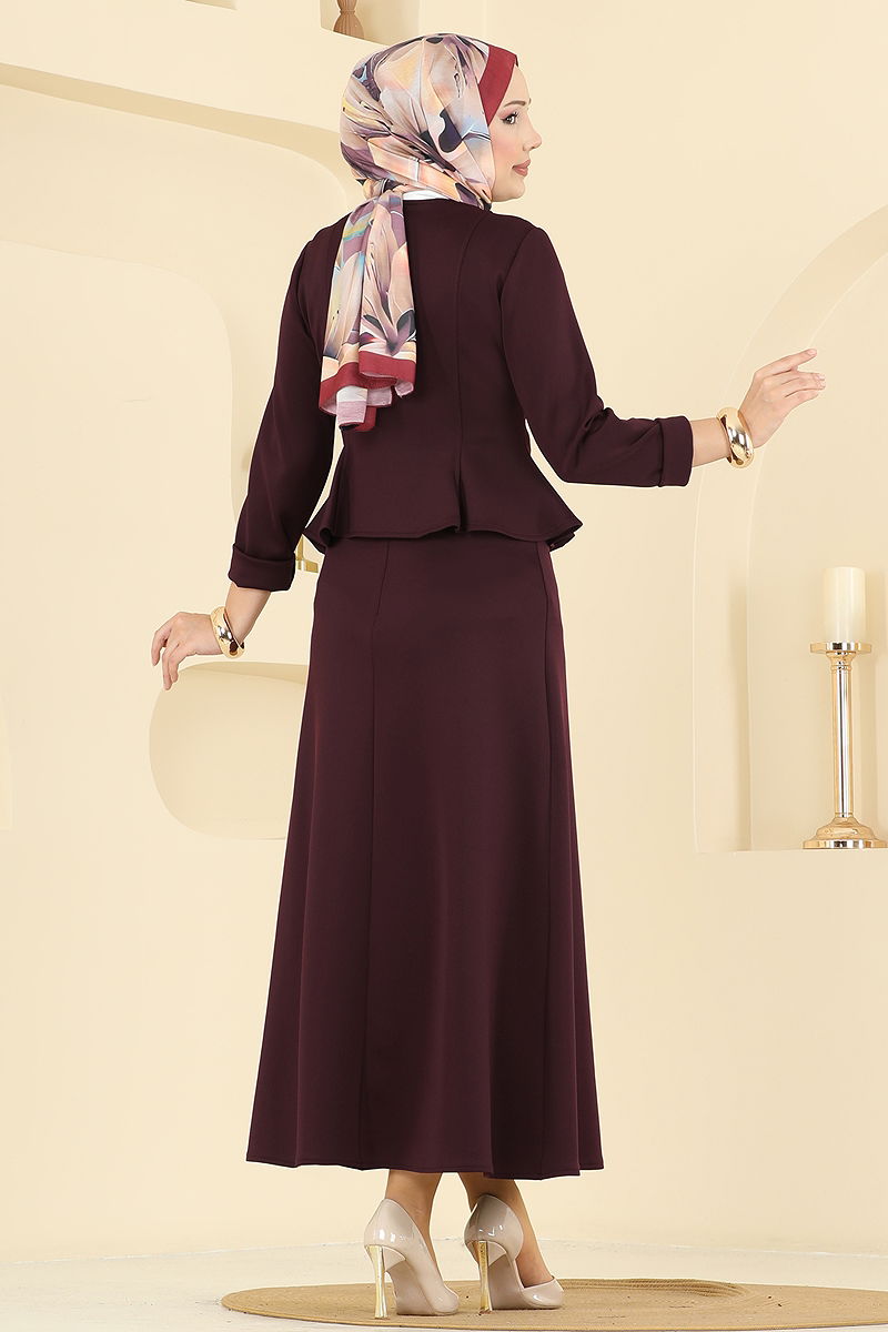 المنتج لديه ياقة دائرية. غير مبطنة. الكبسات مفعلة البلوزة غير متضمنة. صُنعت عينة من المجموعة مع البلوزة لإظهار الاستخدام المقصود للمنتج. التنورة تحتوي على سحاب على الخصر قد يكون هناك اختلاف في الدرجة اللونية في المنتج بسبب التقاط الصور الفوتوغرافية.