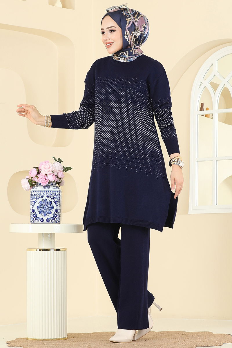 Designed to carry you through autumn and winter with elegance, the Side-Slit Duo Set combines comfort and chic styling in modest wear. The carefully selected knit fabric offers superior comfort on cold days and can be easily maintained with gentle washing. The tunic features a modern look with side-slit details and a crew neck design, while the elastic waistband pants ensure ease of wear. This duo set will become an indispensable part of your wardrobe, enabling you to display an elegant style in any setting.