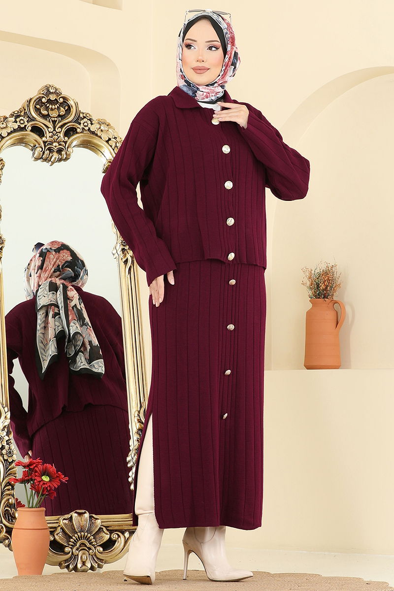 The Front Buttoned Skirt Suit COMBINE offers elegance and comfort in modest wear. Suitable for delicate wash, this product is made from knit fabric and can be washed at 30 degrees. Featuring a shirt collar design, the suit is buttoned at the front and is unlined. The buttons on the skirt add a decorative look, while the tunic and skirt of the set are designed to fit sizes 38-40-42. This versatile product can be comfortably worn in any season, from everyday use to special occasions.