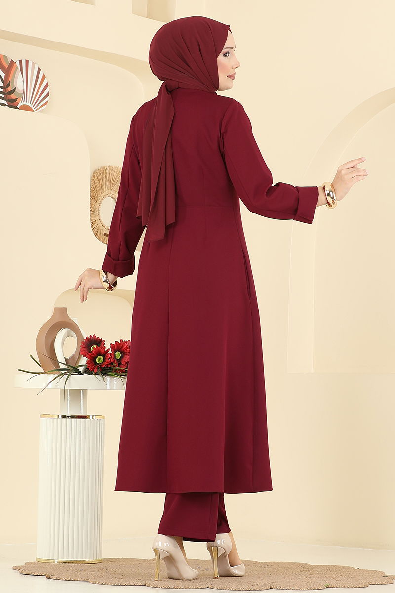 Showcasing unique design and high-quality fabric, the Button-Detailed Dabıl Suit KOMBIN offers elegance and comfort together in modest wear. This product, which can be washed gently at 30 degrees, has a lined stand-up collar. Comprising a tunic and trousers, the ensemble includes practical pockets on the tunic. The elastic waistband on the trousers ensures comfort all day long. Ideal for those who embrace a distinctive design philosophy, it features both front and concealed buttons.