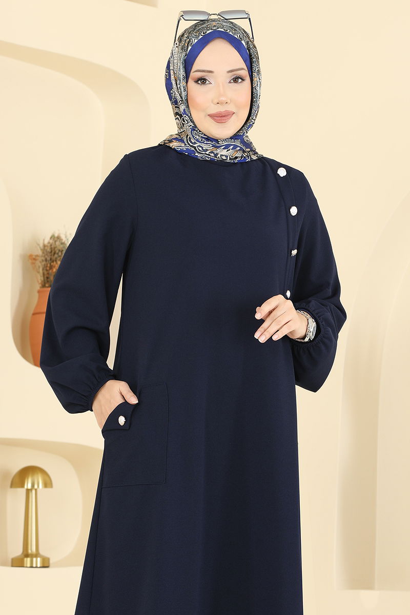 If you are looking for a chic and modern style, the Single Pocket Crepe Suit COMBINATION is perfect for you! Suitable for all seasons, this modest wear suit offers gentle wash at 30 degrees. Its crew neck and unlined design prioritize comfort, while the back-button feature and elastic waistband on the pants ensure all-day ease. Pockets in the tunic and pants increase functionality, while the elastic details on the cuffs complete the elegance. The product on the model is size 38.