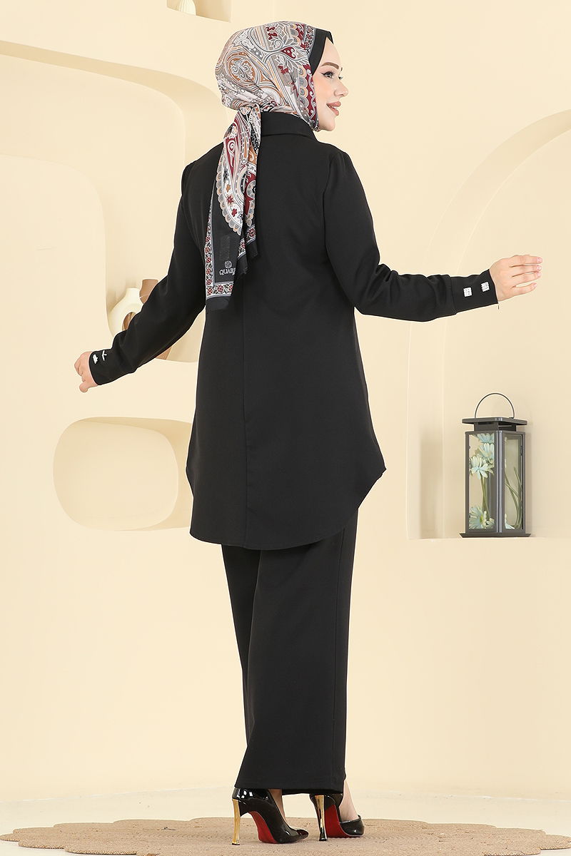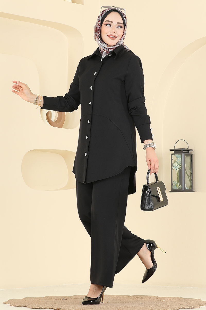 Product Feature : It is a new season hijab fashion product. The product has a Shirt collar. The product has From the front buttons. Unlined. Blouse is not included. Sample combination is made with the blouse to show the intended use of the product. The waist of the trousers is elastic. Cuff buttons are accessories. There may be a tonal difference in the product due to concept photo shoots.