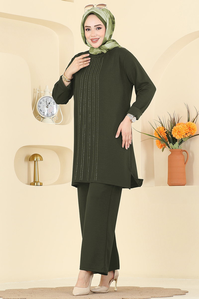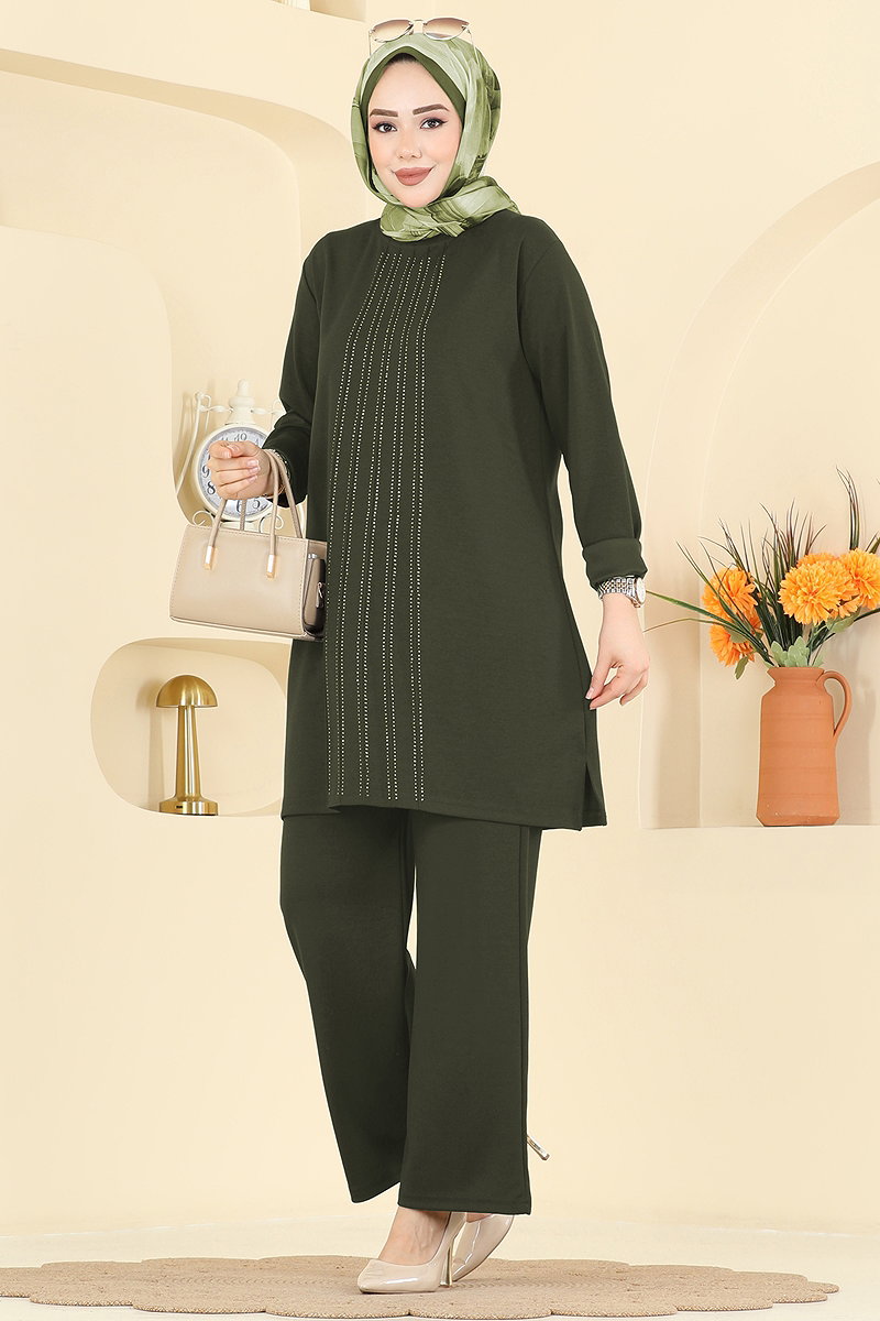 Product Feature : It is a new season hijab fashion product. The product has a Cycling collar. Unlined. The stones are glued. The waist of the trousers is elastic. There may be a tonal difference in the product due to concept photo shoots.