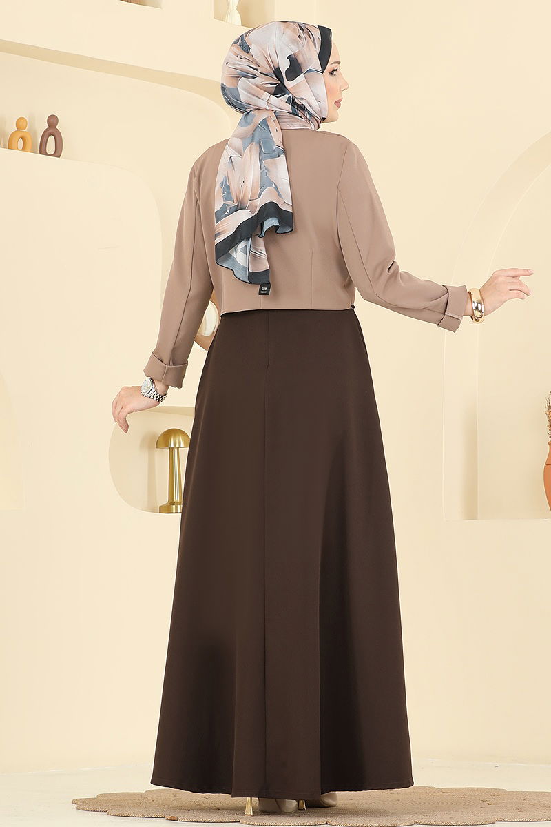 The Asymmetric Jacket Dabıl Suit is a stylish hijab set suitable for all seasons. Recommended to be washed gently at 30 degrees, this product features a high-neck collar and front button details that offer a contemporary look. Its lining-free design and back zipper make it comfortable to wear. Both chic and practical, this combination will make you stand out in any setting.