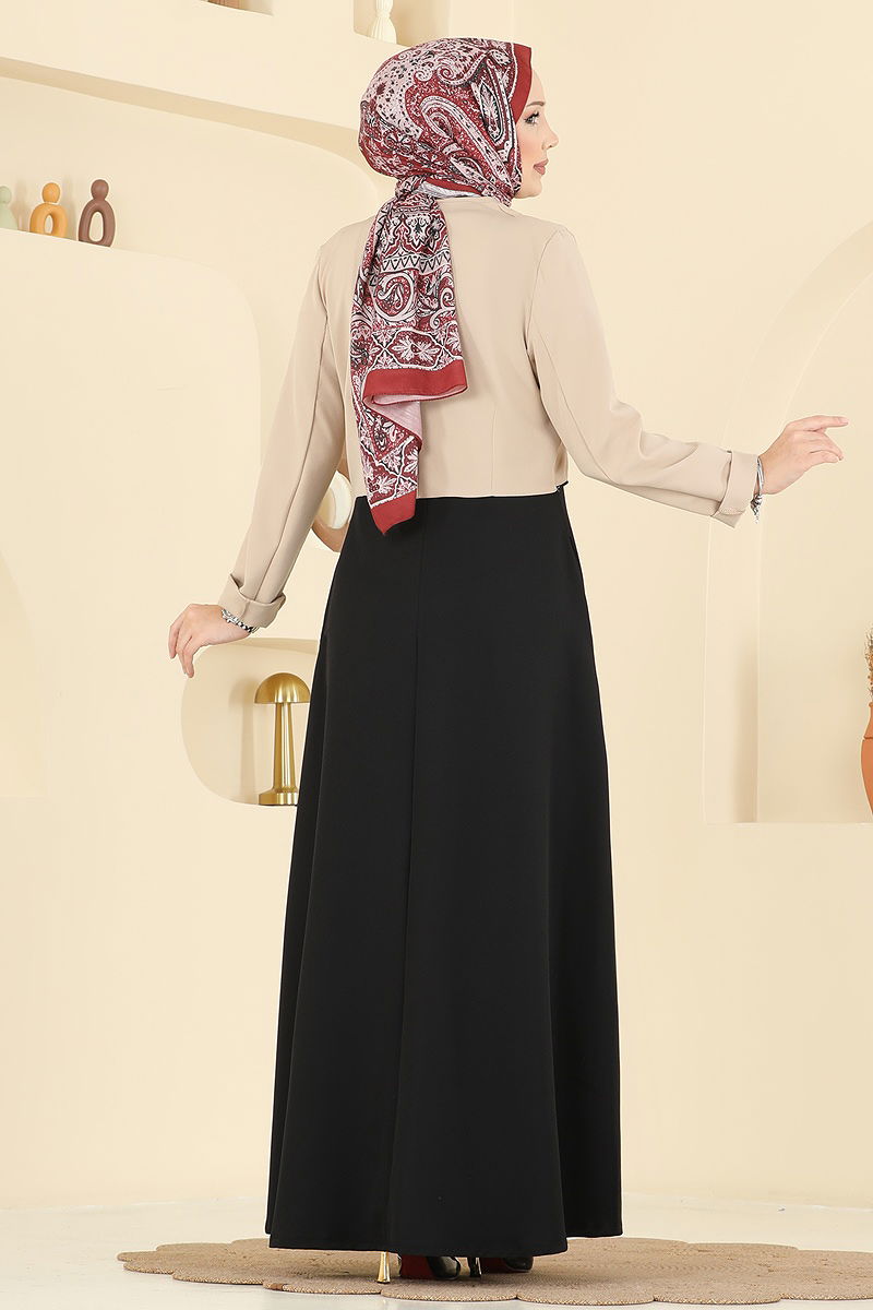 The Asymmetric Jacket Dabıl Suit is a stylish hijab set suitable for all seasons. Recommended to be washed gently at 30 degrees, this product features a high-neck collar and front button details that offer a contemporary look. Its lining-free design and back zipper make it comfortable to wear. Both chic and practical, this combination will make you stand out in any setting.