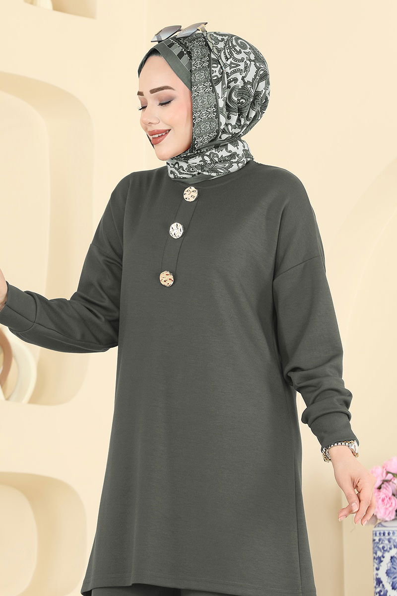 Elegant and comfortable, the Buttoned Modal Suit is specially designed for modest wear. Enjoy it throughout all seasons. The soft texture and lightness of modal fabric ensure comfort all day long. Washable at 30 degrees on delicate cycle, this suit offers long-lasting wear. The decorative buttons on the tunic and the elastic waistband of the trousers combine both style and comfort. Whether for daily wear or special occasions, express your style with the Chic Buttoned Modal Suit.