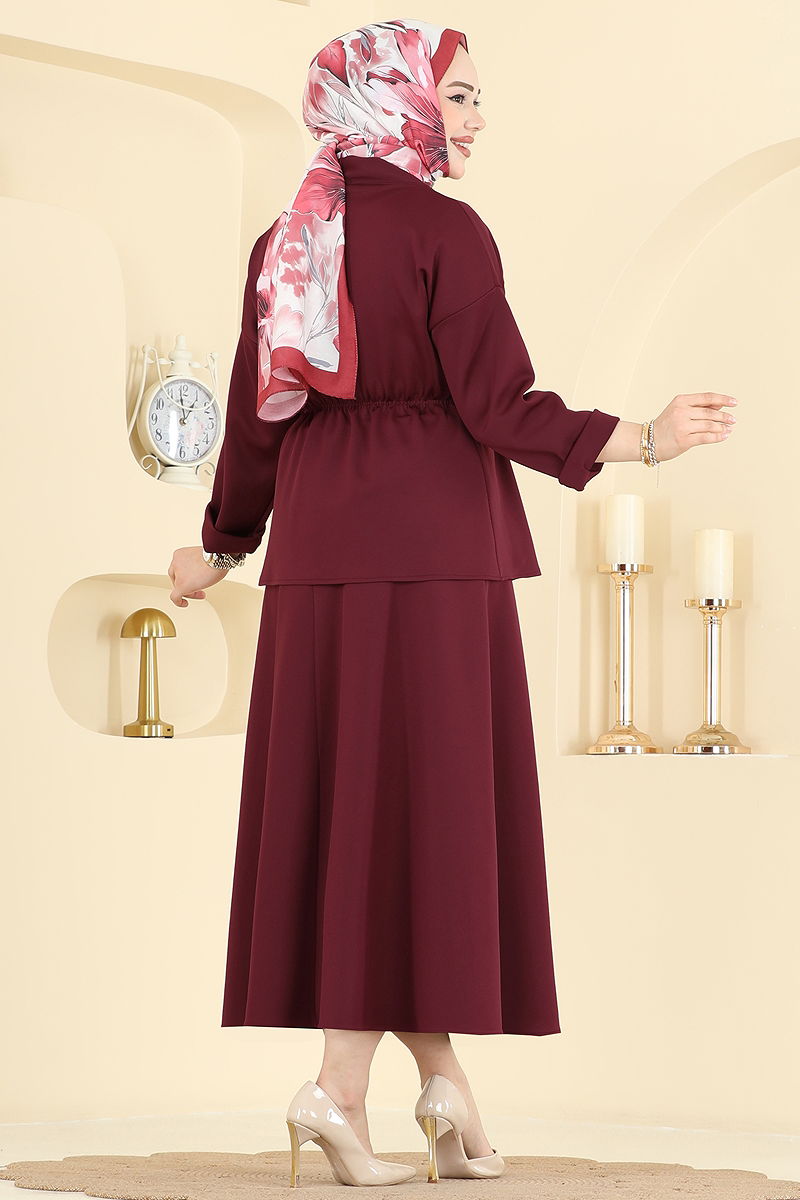 The Single Button Scuba Suit, with its COMBINE model, brings elegance and comfort together in modest wear. Suitable for all seasons, this product can be washed at 30 degrees on a delicate cycle, maintaining its form thanks to the scuba fabric. The V-neck design offers a modern look, while the unlined structure provides lightness. With an elastic waist skirt for ease of use, complete your style with the sample size S.