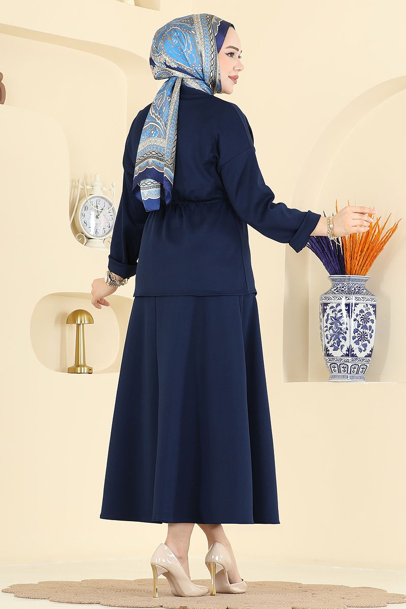 The Single Button Scuba Suit, with its COMBINE model, brings elegance and comfort together in modest wear. Suitable for all seasons, this product can be washed at 30 degrees on a delicate cycle, maintaining its form thanks to the scuba fabric. The V-neck design offers a modern look, while the unlined structure provides lightness. With an elastic waist skirt for ease of use, complete your style with the sample size S.