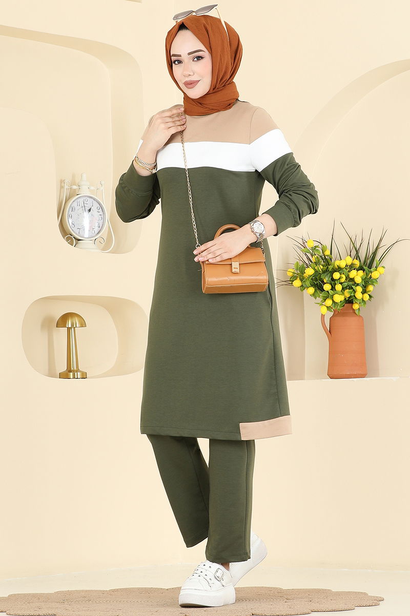 طقم أخضر عفني و بيج 2794SL432