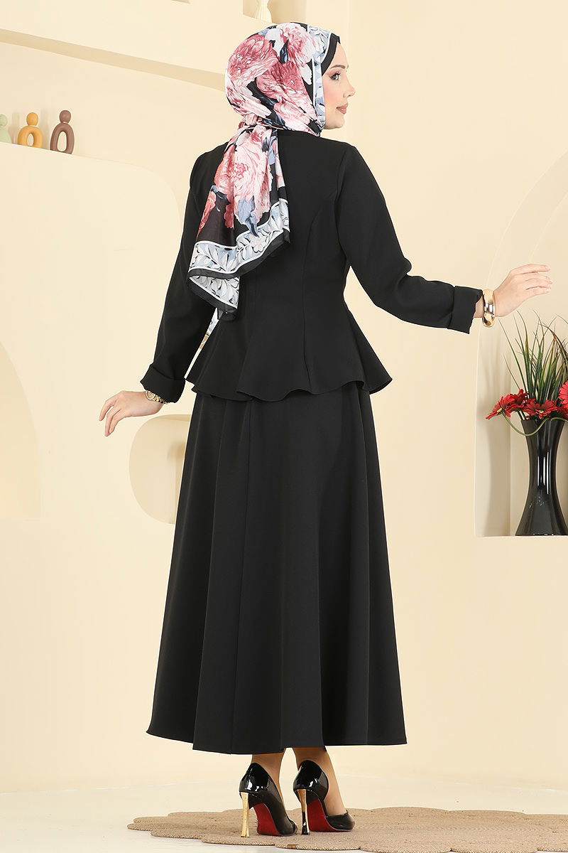 The Collared Dabıl Suit COMBO is a stylish and modern modest wear product that stands out with its design. Suitable for all seasons, this combo is made from special Dabıl fabric which ensures durability. The product can be washed at 30 degrees on a gentle cycle and offers practicality with its design features. With a semi-Mao collar and front button closure, this combo is light and comfortable due to its unlined structure. The set includes a blouse and a skirt with a zippered waist, and the lace details enhance the elegance.
