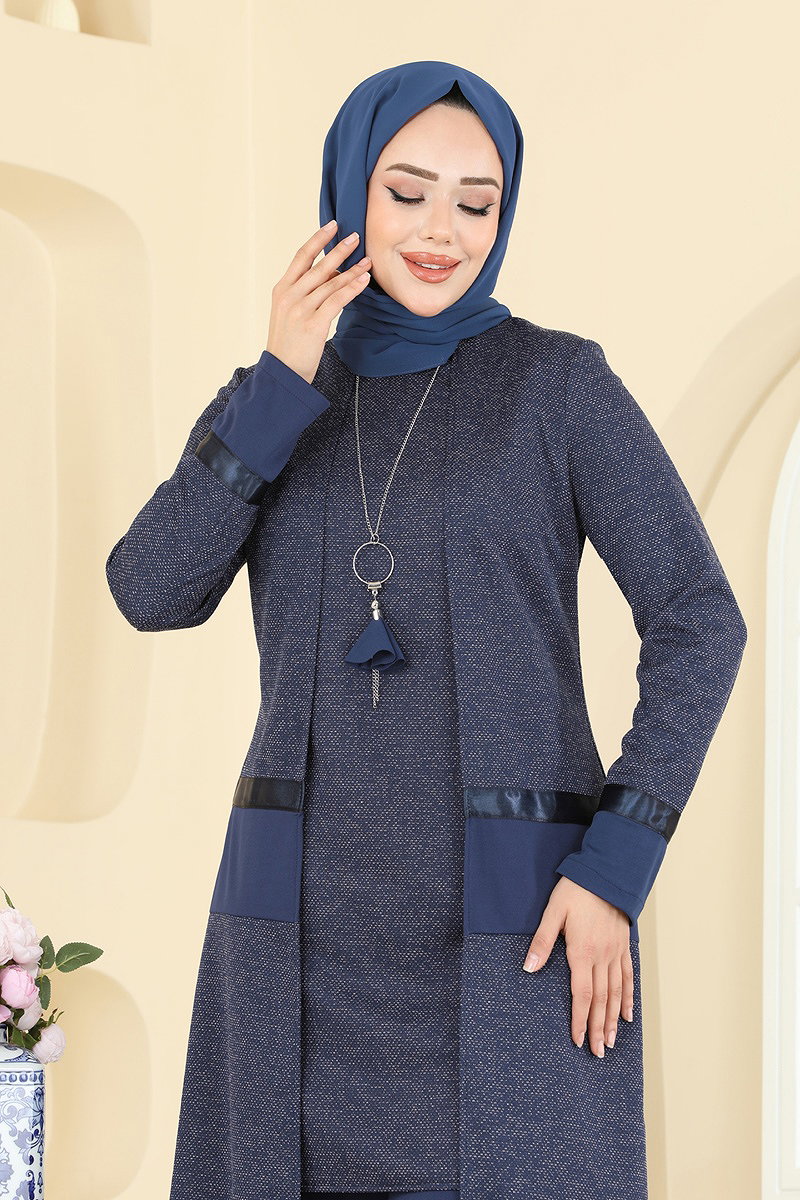 Product Feature : It is a new season hijab fashion product. The product has a Cycling collar. It's unlined. It's see-through.. Accessory included, optional not available. Cardigan is sewn to the product. The waist of the trousers is elastic. There may be a tonal difference in the product due to concept photo shoots.