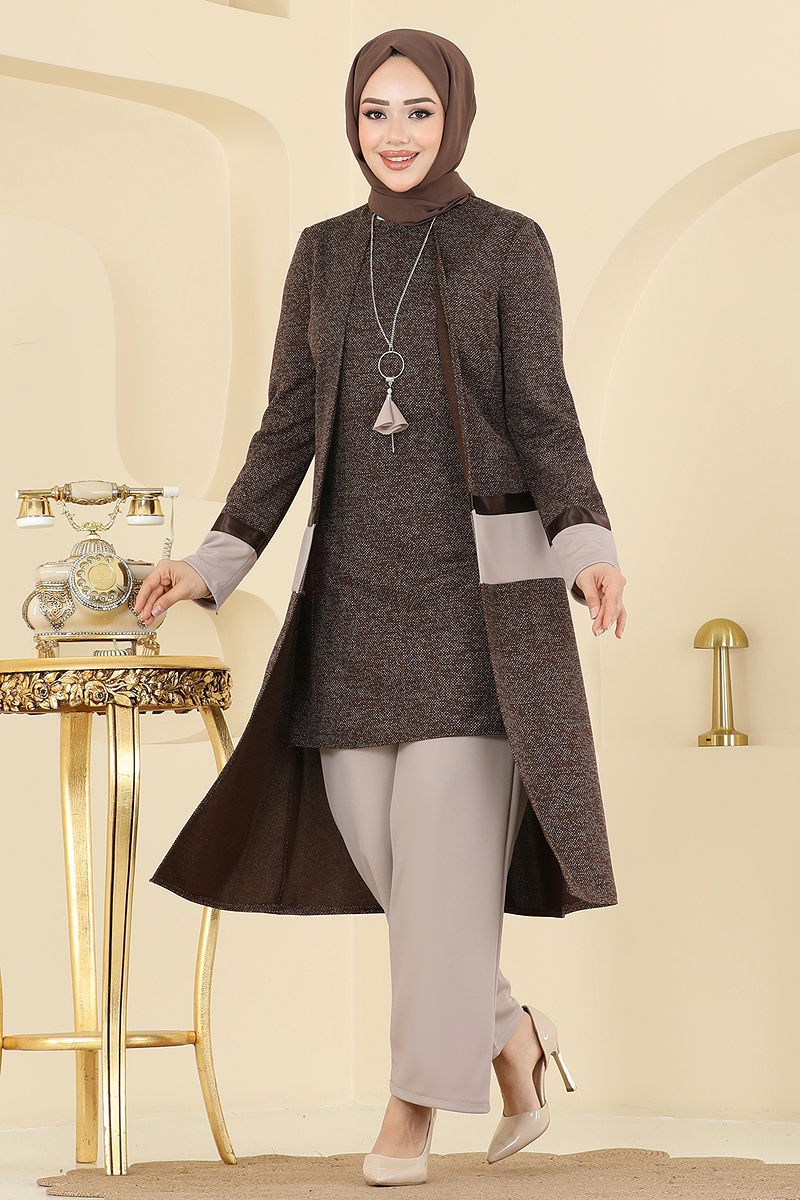 المنتج لديه ياقة دائرية. غير مبطن .الداخل غير شفاف. الاكسسوار يتضمن المنتج يستخدم حسب الرغبة سترة صوفية مخيطة على المنتج. خصر البنطال مرن. قد يكون هناك اختلاف في الدرجة اللونية في المنتج بسبب التقاط الصور الفوتوغرافية.