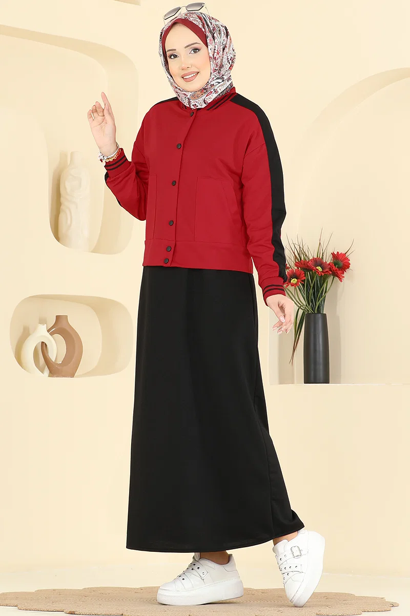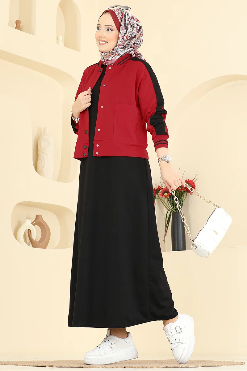 Elegant and functional, the Jacket Detailed 2-Piece Dress COMBO is an ideal choice for modest dressing. Suitable for all seasons, this set can be gently washed at 30 degrees. Made from dual-thread fabric, it features a crew neck and a buttoned front, offering both comfort and style. The jacket is unlined with snap buttons in the front, while the inner dress is sleeveless with ribbed cuffs. Available in size 38 as shown on the model, with options for other sizes.