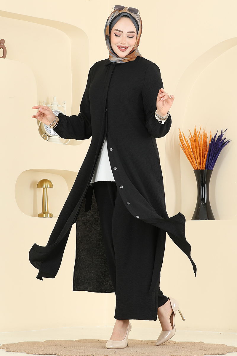 المنتج لديه ياقة القميص. المنتج به أزرار من الأمام. البلوز تحتوي على فتحة. الجيب متاح. خصر البنطال مرن. السوار مطاطي. قد يكون هناك اختلاف في الدرجة اللونية في المنتج بسبب التقاط الصور الفوتوغرافية.