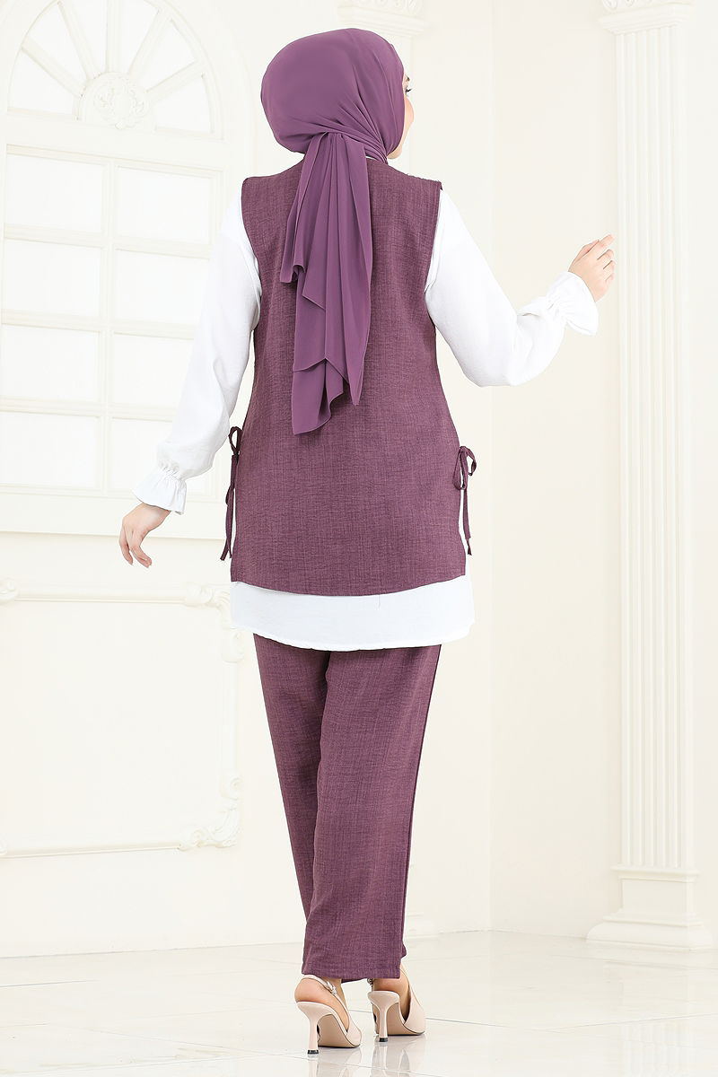 The Stone-Detailed Sweater Set is a modern and stylish modest wear suitable for all seasons. Adorned with striking pearl and stone details, this bespoke design is made from Sofia Linen fabric and is suitable for delicate wash (washable at 30°C). Designed with your comfort in mind, this set offers perfect fit with its elastic waistband and cuffs. Its shirt collar and front button design provide practical use. The slit, unlined structure makes it light and comfortable. The high-quality fabric and exquisite details will make you dazzle in any setting.
