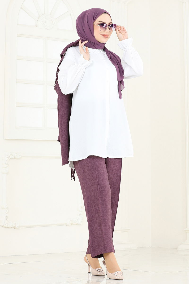 المنتج لديه ياقة القميص. المنتج به أزرار من الأمام. يحتوي على فتحة. غير مبطنة. تم اضافة اللؤلؤ بطريقة التعبئة التفاصيل الحجرية محفورة. المنتج بأربطة. خصر البنطال مرن. السوار مطاطي. قد يكون هناك اختلاف في الدرجة اللونية في المنتج بسبب التقاط الصور الفوتوغرافية.