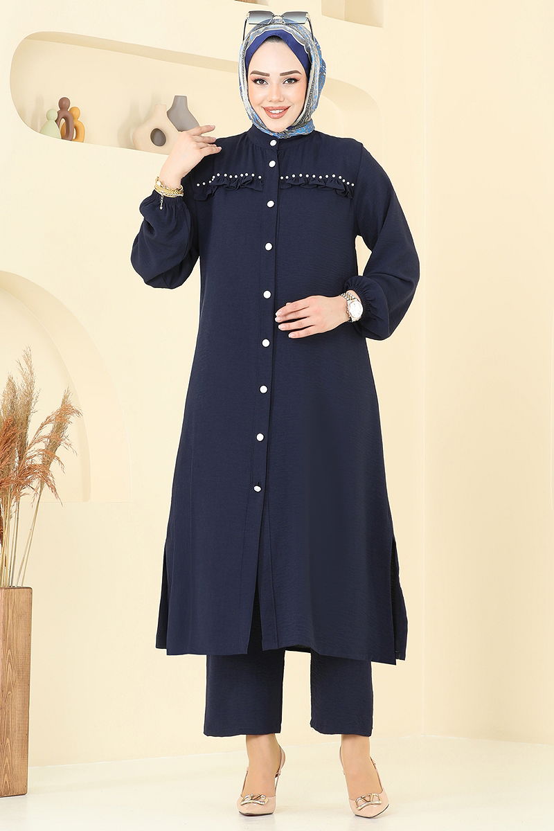 المنتج لديه ياقة نصف بيضوية. المنتج به أزرار من الأمام. البلوز تحتوي على فتحة. غير مبطنة. تم اضافة اللؤلؤ بطريقة التعبئة البلوزة غير متضمنة. صُنعت عينة من المجموعة مع البلوزة لإظهار الاستخدام المقصود للمنتج. خصر البنطال مرن. السوار مطاطي. قد يكون هناك اختلاف في الدرجة اللونية في المنتج بسبب التقاط الصور الفوتوغرافية.