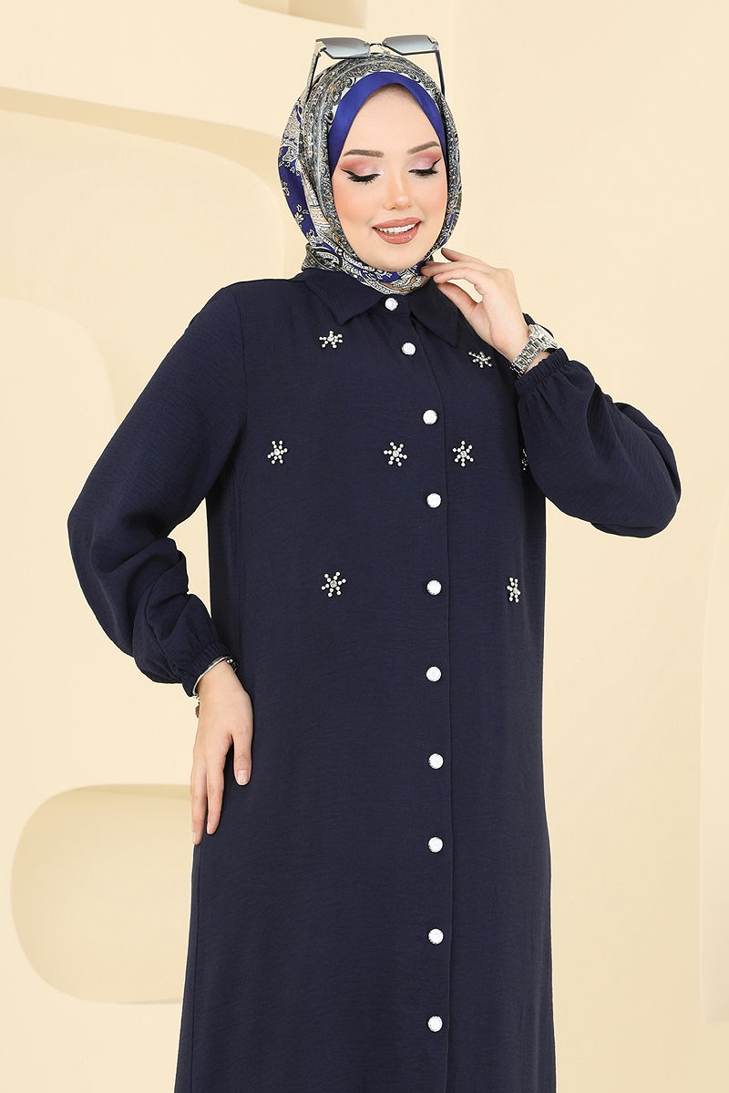 The Pearl Detail Set is a modern modest wear combo that offers both style and comfort. Suitable for all-season use, this set can be washed at 30 degrees with gentle care. Made from aerobin fabric, it features a shirt collar and front button details for practical use. The side-slit tunic and elastic-waisted trousers allow for freedom of movement. Pearl and gemstone details add a touch of elegance. The elastic cuffs on both the tunic and trousers ensure a comfortable fit. This elegant set is ideal for those who want to emphasize the elegance and comfort of modern modest fashion.