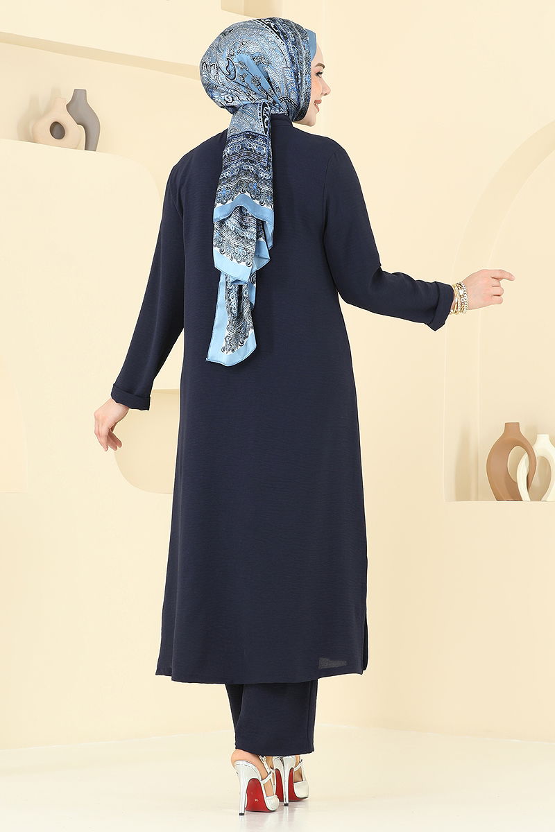 Discover elegance with the Pearl-Detailed Hijab Suit , suitable for all seasons. Made from Aerobin fabric, this chic outfit can be washed at 30 degrees under delicate settings. It offers convenience with its over-the-head design and elastic waistband on the pants. The tunic features side slits and comes without lining. The pearl details enhance its elegance, providing a sophisticated look for any setting.