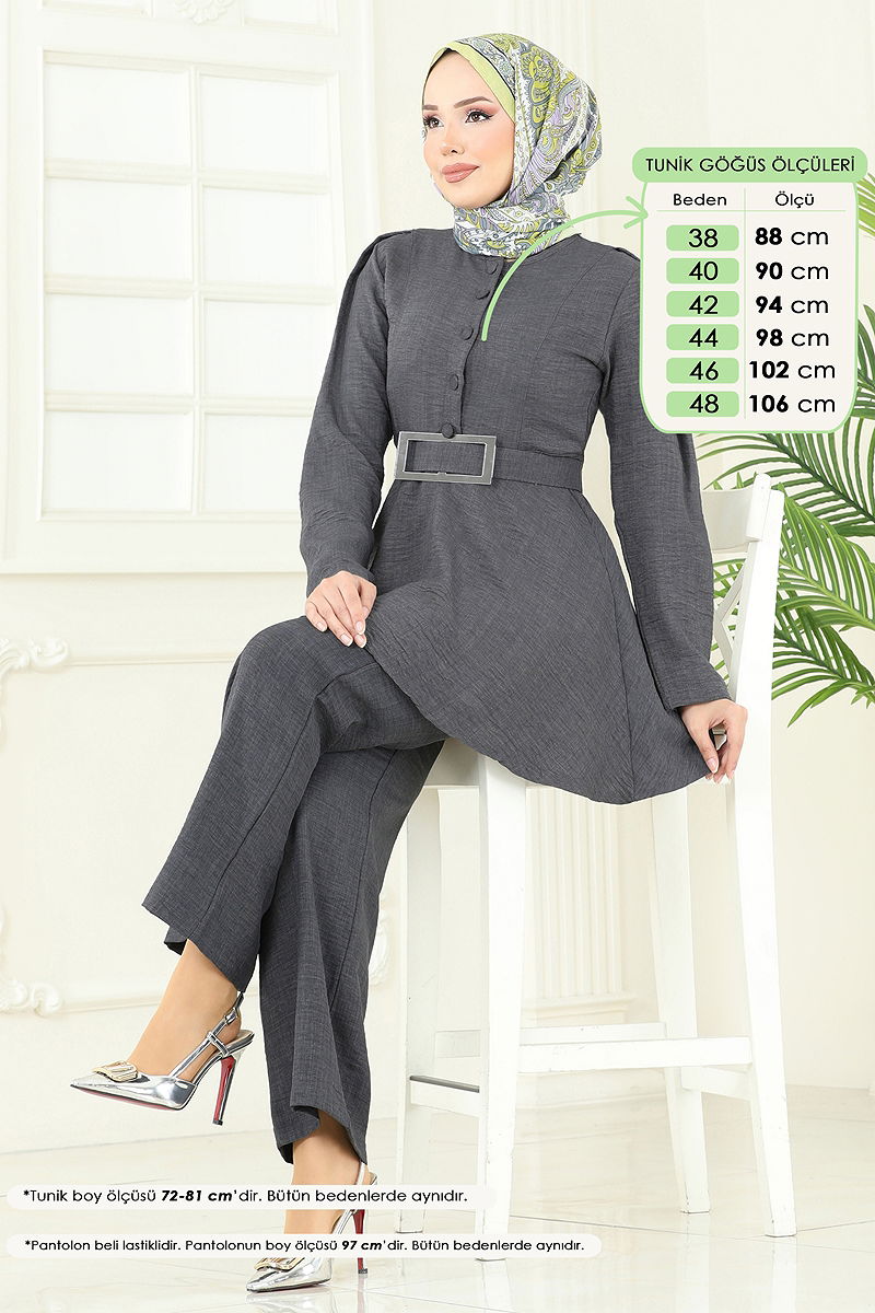 المنتج لديه ياقة دائرية. المنتج به أزرار نصف أمامي. غير مبطنة. المنتج يحتوي على حزام خصر مُخاط. الحزام متضمن، ،يمكن استخدامها حسب الرغبة خصر البنطال مرن. قد يكون هناك اختلاف في الدرجة اللونية في المنتج بسبب التقاط الصور الفوتوغرافية.