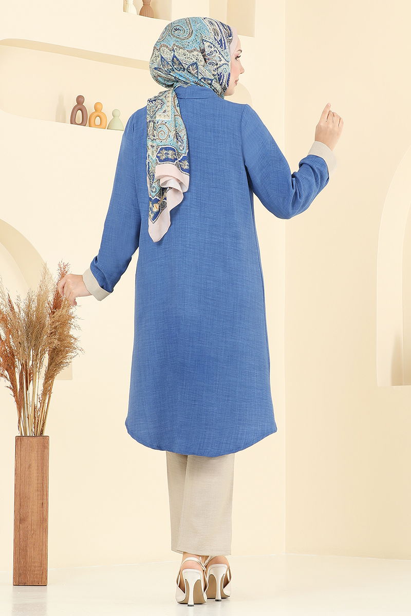 The Asymmetric Cut Three-Piece COMBINATION is an elegantly designed modest wear outfit made from sofia linen, suitable for all seasons. It features a liner-free crew neck, sleeveless inner tunic, and an elastic waist on the pants. Offering both style and comfort, this set can be washed at 30 degrees on a gentle cycle. The practical buttoned back makes it easy to wear, ensuring it becomes a favorite in your wardrobe with its perfect fit and chic design.