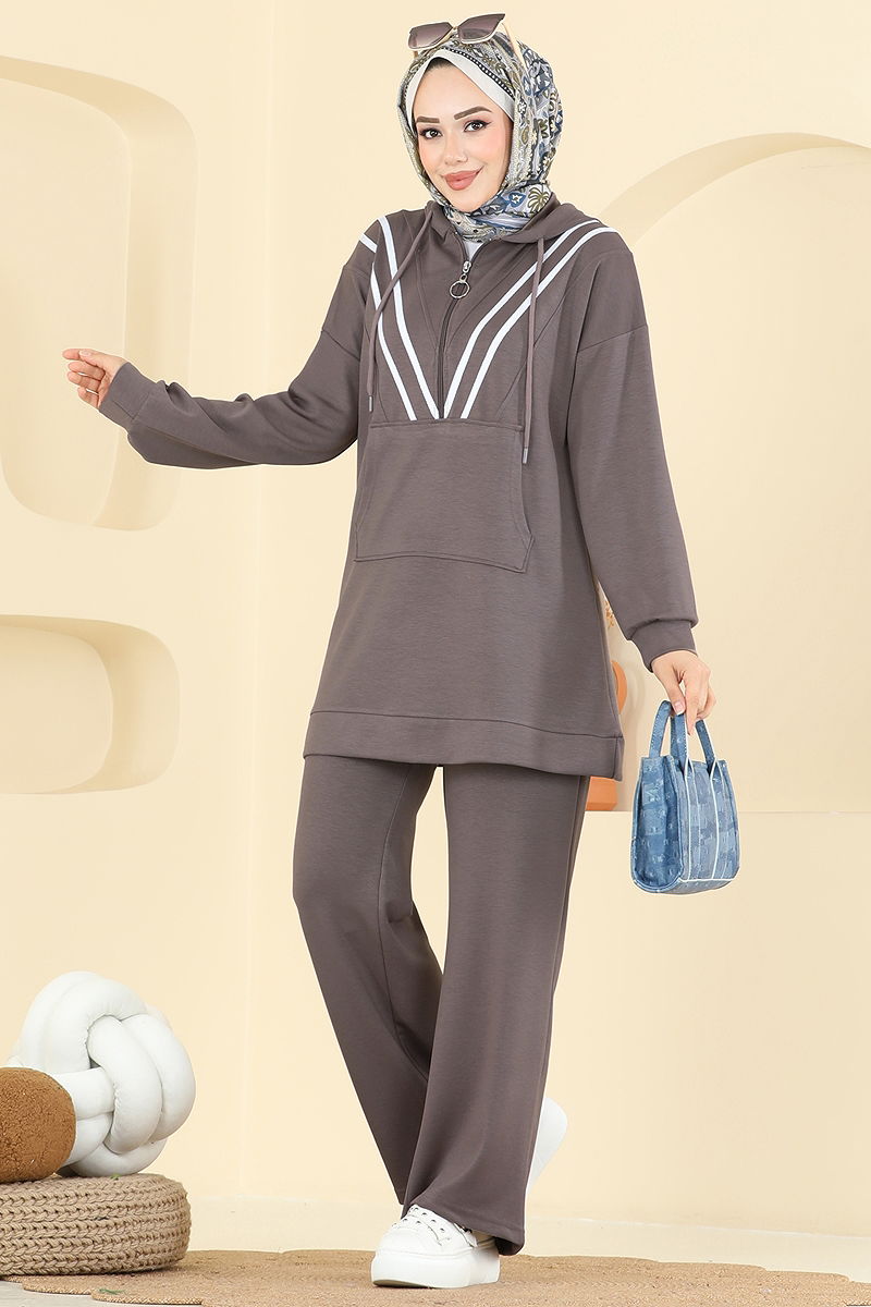 يوجد سحاب نصفي يمكن استخدامه من الأمام. المنتج لديه ياقة مع قبعة. غير مبطنة. تم خياطة القبعة مع المنتج يحتوي المنتج على جيب. خصر البنطال مرن. قد يكون هناك اختلاف في الدرجة اللونية في المنتج بسبب التقاط الصور الفوتوغرافية.