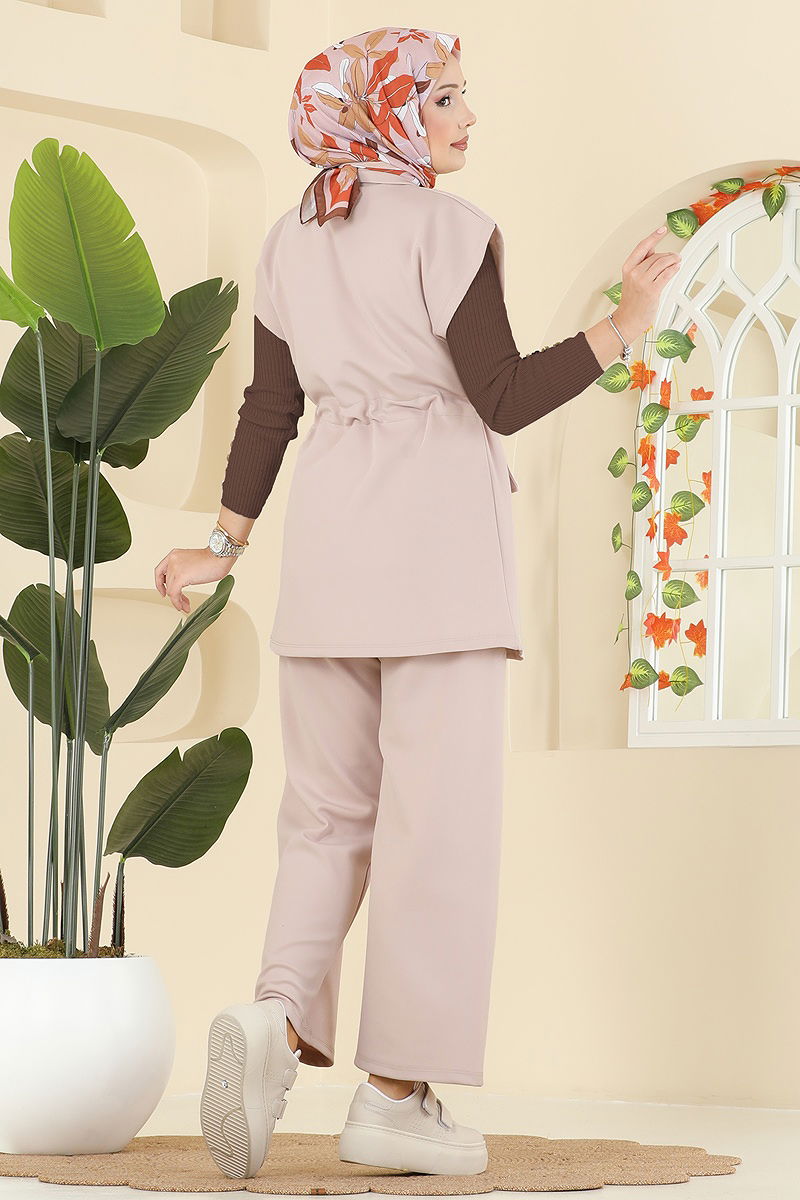 Product Feature : It is a new season hijab fashion product. It has a laced waist. The product has snap-button sleeves. The neck drawstring is active. The product has a Half Judge collar. Unlined. The product has a zipper at the From the front part. Blouse is not included. Sample combination is made with the blouse to show the intended use of the product. Pocket available. The waist of the trousers is elastic. There may be a tonal difference in the product due to concept photo shoots.