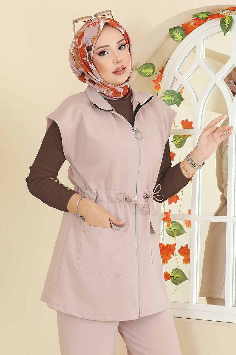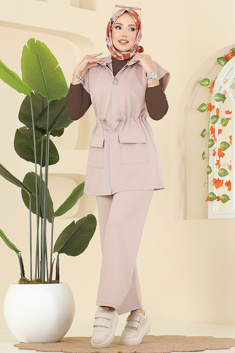 يتميز بخصر ذو أربطة. .المنتج يحتوي على أكمام بأزرار كبس .الحبل القابل للشد عند الرقبة نشط المنتج لديه ياقة نصف بيضوية. غير مبطنة. المنتج به سحاب في جزء من الأمام. البلوزة غير متضمنة. صُنعت عينة من المجموعة مع البلوزة لإظهار الاستخدام المقصود للمنتج. الجيب متاح. خصر البنطال مرن. قد يكون هناك اختلاف في الدرجة اللونية في المنتج بسبب التقاط الصور الفوتوغرافية.