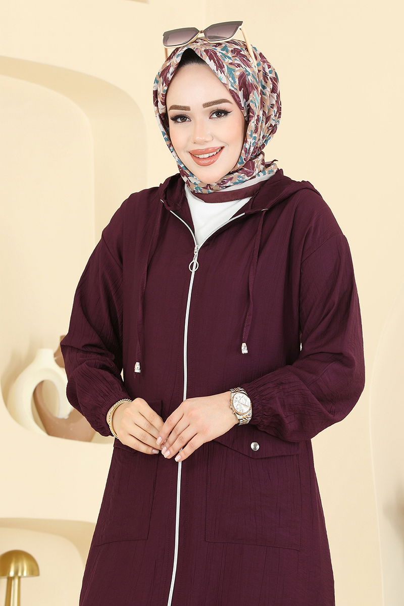 Product Feature : It is a new season hijab fashion product. The neck drawstring is active. The product has a Hooded collar. Unlined. The product has a zipper at the From the front part. There are adjustable laces on the right and left hem of the product. The hood is sewn to the product. Pocket available. The waist of the trousers is elastic. The cuff is rubberized. There may be a tonal difference in the product due to concept photo shoots.