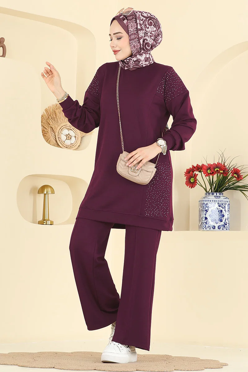 Product Feature : It is a new season hijab fashion product. The product has a Cycling collar. Unlined. The stones are glued. The waist of the trousers is elastic. There may be a tonal difference in the product due to concept photo shoots.