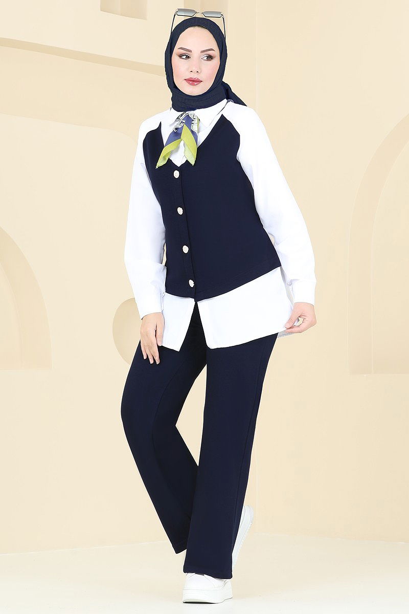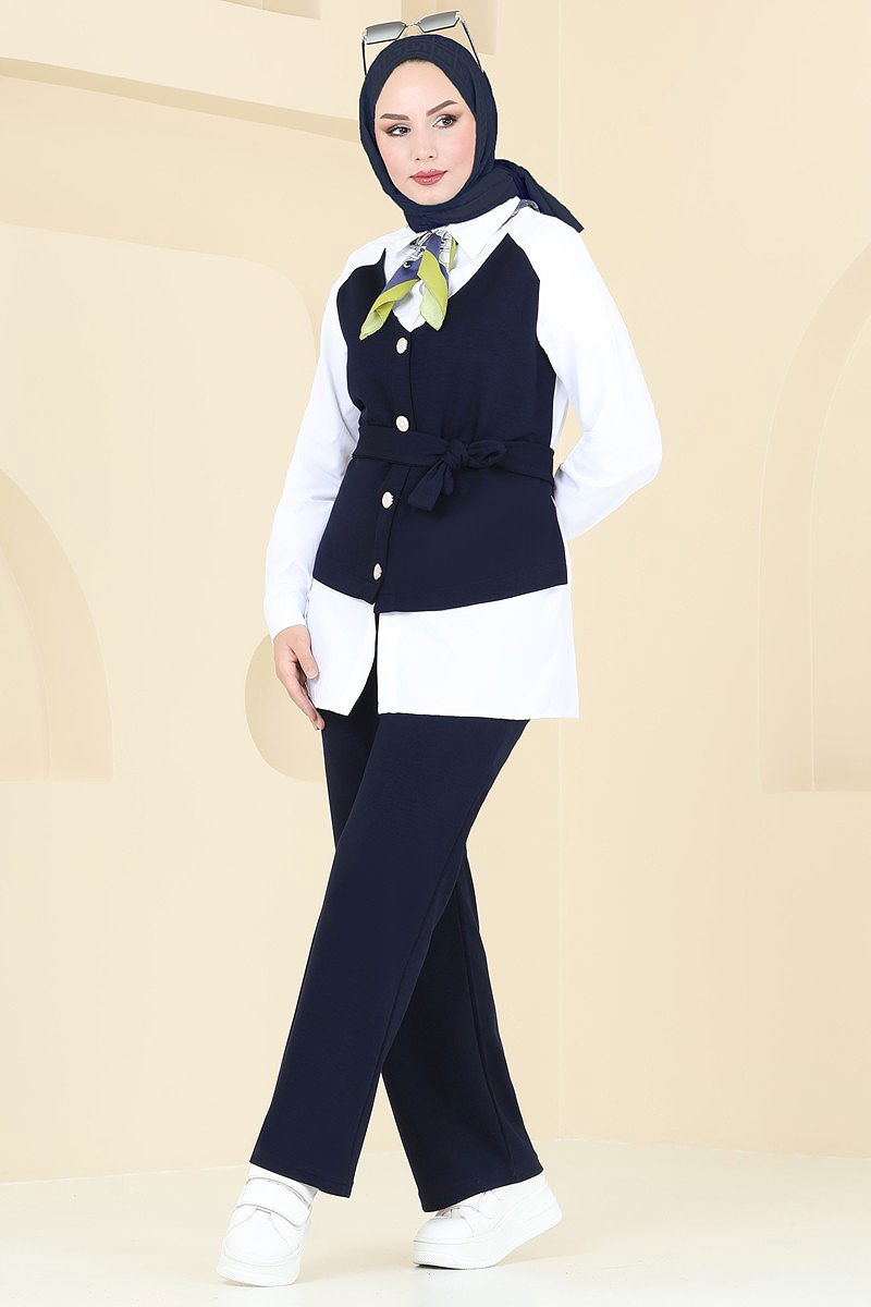 المنتج لديه ياقة القميص. المنتج به أزرار من الأمام. البلوز تحتوي على فتحة. غير مبطنة. سترة صوفية مخيطة على المنتج. مناسب للاستخدام اليومي. الحزام مخيط. الملحقات غير متضمنة. خصر البنطال مرن. أزرار الكفة نشطة. قد يكون هناك اختلاف في الدرجة اللونية في المنتج بسبب التقاط الصور الفوتوغرافية.