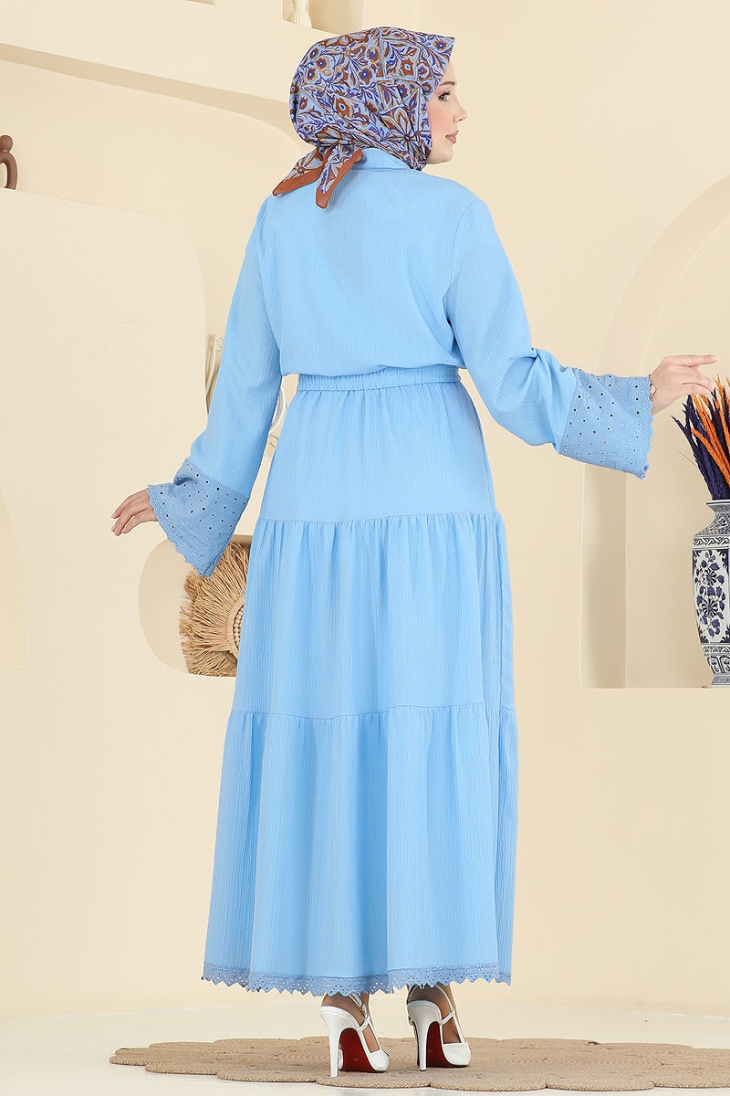 المنتج لديه ياقة القميص. المنتج به أزرار من الأمام. غير مبطنة. التفاصيل المخرمة مخيطة. الجيب الصدري نشط. .خصر التنورة مرن قد يكون هناك اختلاف في الدرجة اللونية في المنتج بسبب التقاط الصور الفوتوغرافية.