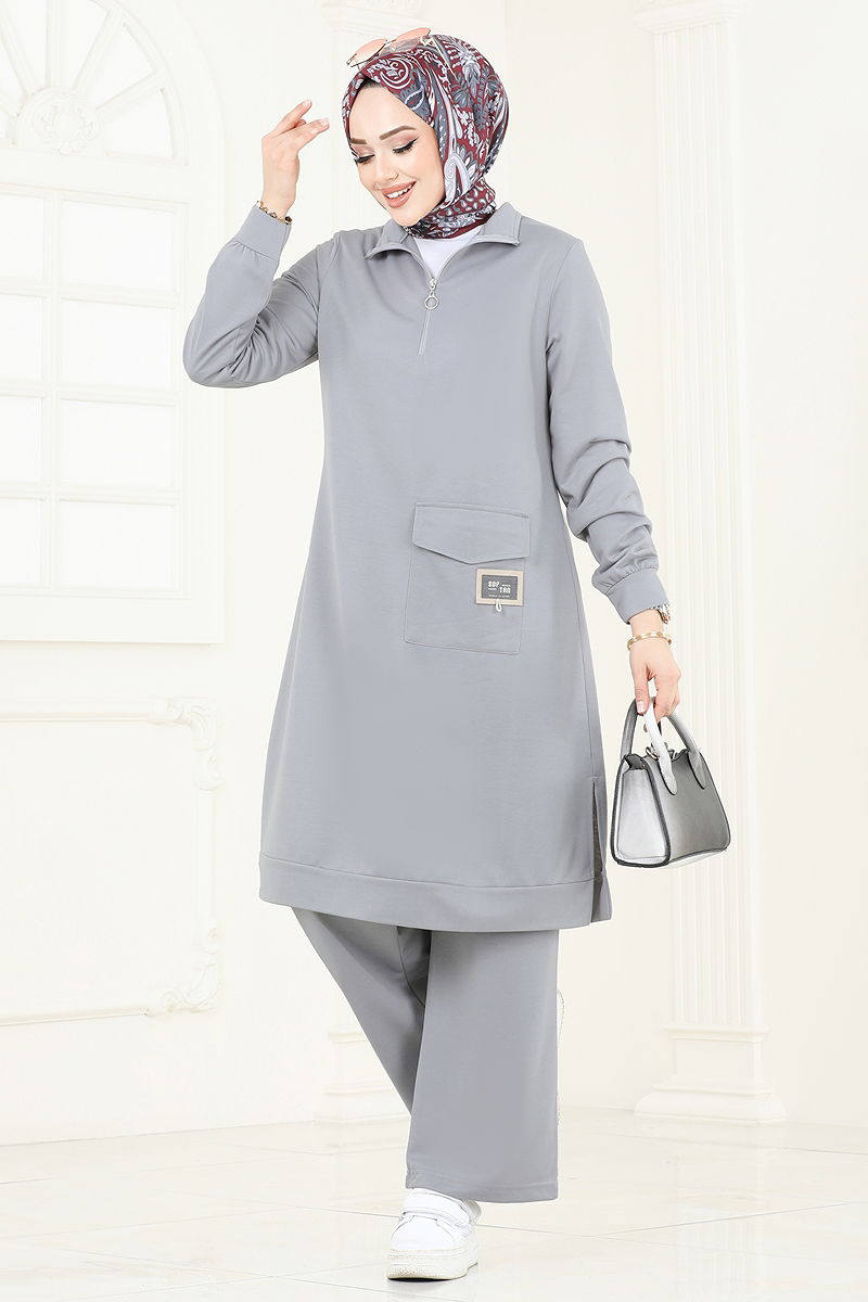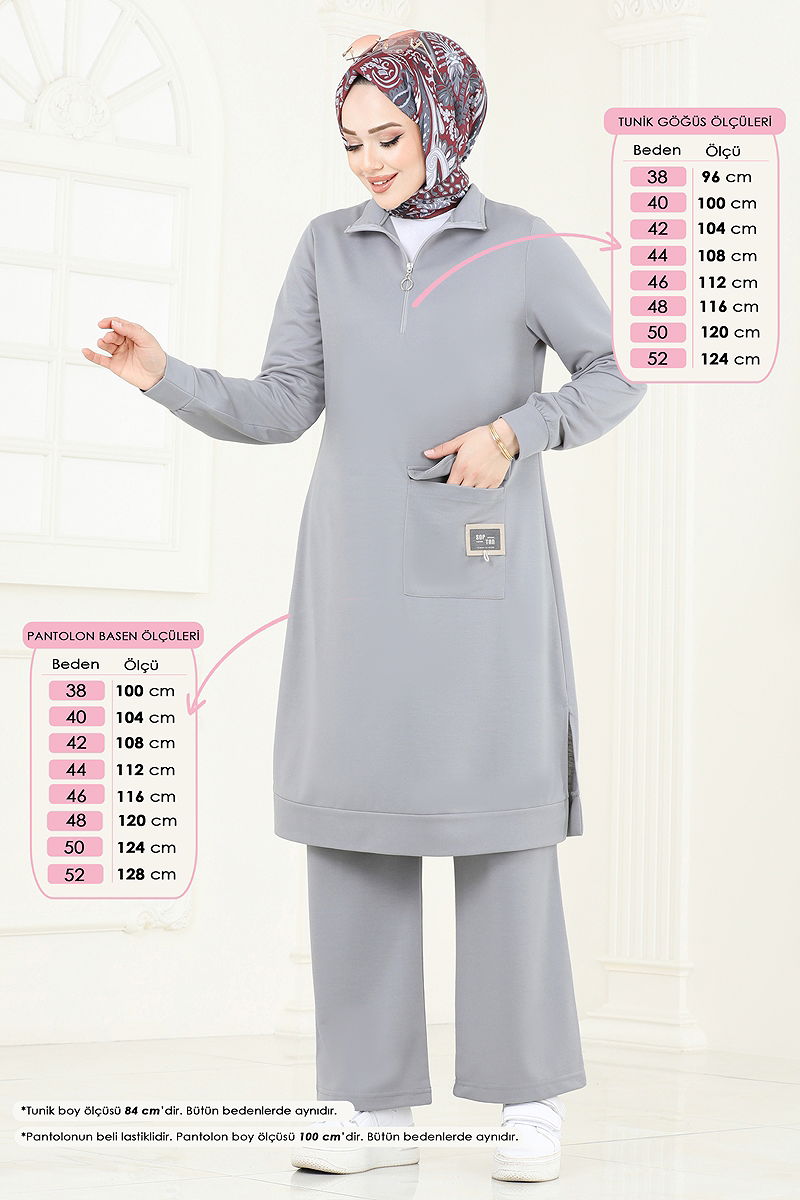 Offering both elegance and comfort, the Arma Detail Hijab Set is a unique product that can be used comfortably in all four seasons. Its specially designed two-thread fabric is durable and can be washed at 30 degrees with delicate care. Featuring a shirt collar design and an unlined structure, it offers a modern look. This set, consisting of a tunic and trousers, draws attention with its zippered front and sewn arm detail. Providing both stylish and practical use, this hijab set will become an indispensable part of your wardrobe.