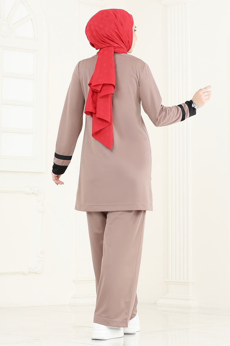 The Biye Detail Double Set offers elegance and comfort together, being a leading choice in modest wear. Suitable for all seasons, this product is made from knitted double fabric and can be washed delicately at 30 degrees. Featuring a bicycle neck and an unlined design, this double set enhances comfort with its elasticated waist trousers, making it ideal for maintaining elegance throughout the year. Designed as a tunic and trousers, this set ensures comfort all day long.