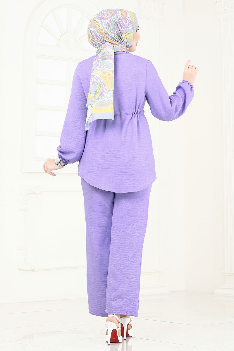 يتميز بخصر ذو أربطة. المنتج لديه ياقة نصف بيضوية. المنتج به أزرار من الأمام. غير مبطنة. الملحقات غير متضمنة. البلوزة غير متضمنة. صُنعت عينة من المجموعة مع البلوزة لإظهار الاستخدام المقصود للمنتج. خصر البنطال مرن. السوار مطاطي. قد يكون هناك اختلاف في الدرجة اللونية في المنتج بسبب التقاط الصور الفوتوغرافية.
