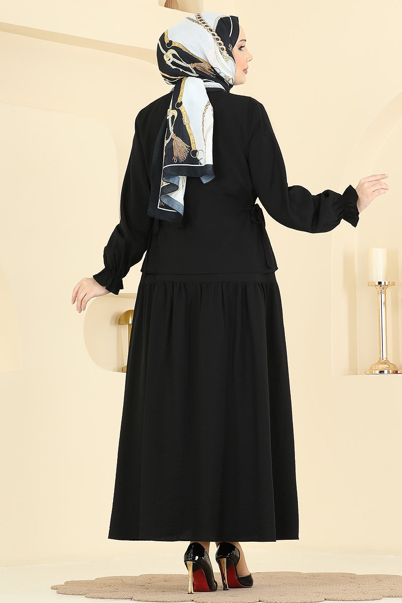 Elegant and comfortable, the Woven Fabric 2-Piece Set is a unique modest wear piece that can be utilized throughout all seasons. This set, which can be washed delicately at 30 degrees, is manufactured from high-quality woven fabric. Its bicycle neck and front-button design add a modern and practical touch. Adjustable drawstrings on the sides and an elastic waistband on the skirt ensure a comfortable fit. Elastic cuffs on both the blouse and skirt complete the elegance of the ensemble. Available in a range of sizes, including a sample size 38 model for an ideal fit. Maintain your elegance in every setting, from everyday wear to special occasions.