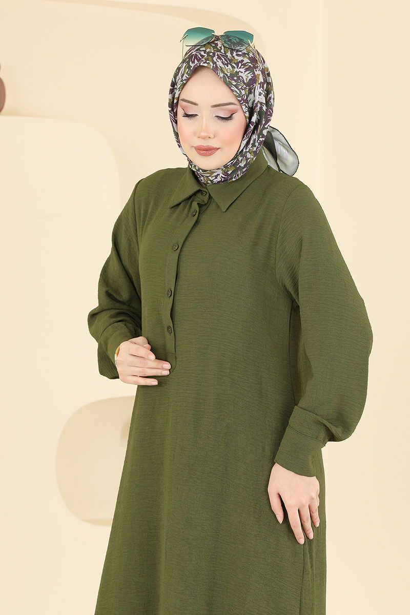 Product Feature : It is a new season hijab fashion product. The product has a Shirt collar. The product has half front buttons. Unlined. The waist of the trousers is elastic. Cuff buttons are active. There may be a tonal difference in the product due to concept photo shoots.